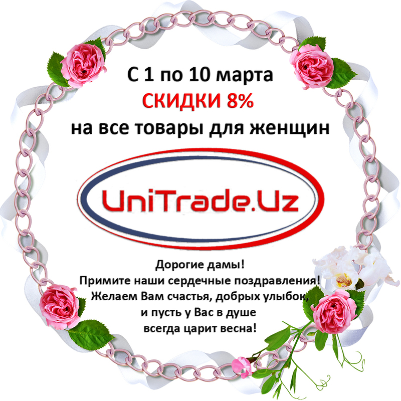 В интернет магазине “UniTrade.Uz” Вы найдете необходимую для Вас бытовую технику и элкектронику и приобретете ее на выгодных условиях, получив при этом массу положительных впечатлений от проведенной покупки и приятного сотрудничества с нами. Основной приоритет нашей работы - сотрудничество начинается с малого: для удобства даже малейшей покупки клиентов мы прилагаем большие усилия, растем и совершенствуемся для Вас. Надежность, порядочность, доверие - основные принципы, на которых базируется наша работа. Персональный подход к каждому покупателю и максимальное внимание и забота - определяющие черты магазина “UniTrade.Uz” Наши постоянные клиенты пользуются более простой формой безналичных расчетов, мы предлагаем множество удобных вариантов. Вам не придется долго ждать на ваши покупки – обработка заказа у нас производится быстро, доставку обеспечиваем до дверей вашего дома. Даже самая маленькая покупка будет доставленной до дверей вашего дома! Ведь мы прекрасно понимаем ваше нетерпение и желание испробовать новую технику в деле. На всю технику, приобретенную в интернет магазине “UniTrade.Uz” предоставляется гарантия и сервис. Товары у нас Вы сможете купить с лучшим соотношением цены - качества и будете приятно удивлены удобными условиями их оплаты и доставки. Посетите наш магазин, сделайте заказ наиболее удобным для Вас способом, и Вы почувствуете, что такое настоящая безупречное качество обслуживания и забота о клиенте! Мы постоянно работаем над увеличением ассортимента товаров, чтобы предоставить вам лучший выбор. Жизнь создает различные условия - мы создаем условия легкой покупки! Если у вас возникают какие-либо вопросы, связанные с деятельностью сайта, предложения или пожелания, связанные с работой интернет-магазина, обращайтесь на email: info@unitrade.uz или по номеру +99890 907-45-46